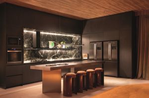 Por fim, na Casa Brastemp, projetada pelo Studio Roca, dos arquitetos Caio e Carlos Carvalho, a marca integrou a marcenaria da cozinha revestida no acabamento Etna e revestiu o teto do ambiente de 170 m² com acabamento amadeirado Oca, promovendo uma fusão harmoniosa entre aconchego e modernidade. Já nos compartimentos da lavanderia, foram aplicados os acabamentos Color Matte, com pintura fosca e metalizada na cor champagne, reforçando a atenção aos detalhes e à sofisticação.