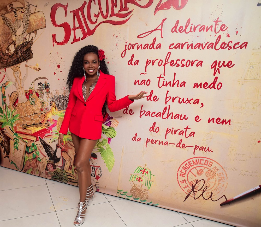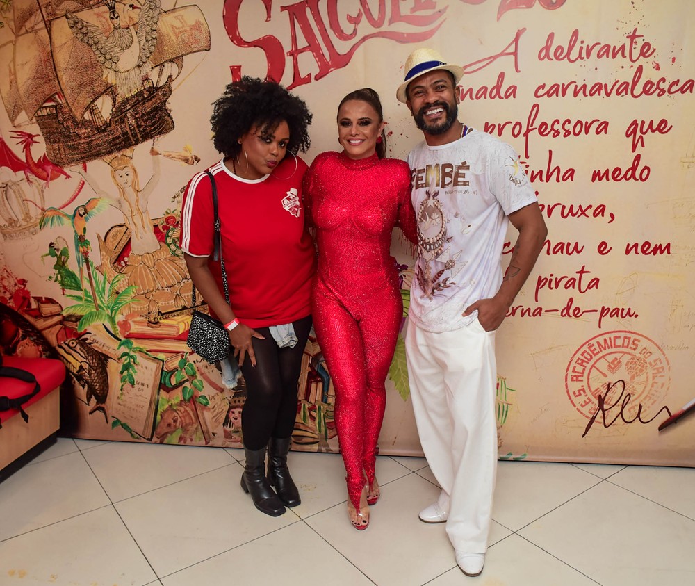 O “frio” no Rio de Janeiro não impediu Viviane Araujo de sambar na quadra do Salgueiro na noite de sábado (19). Usando um look justinho, a atriz optou pela tendência monocromática e apostou em um macacão de calça comprida e mangas longas. Ela se divertiu ao lado dos ritmistas da agremiação e tocou seu tamborim.