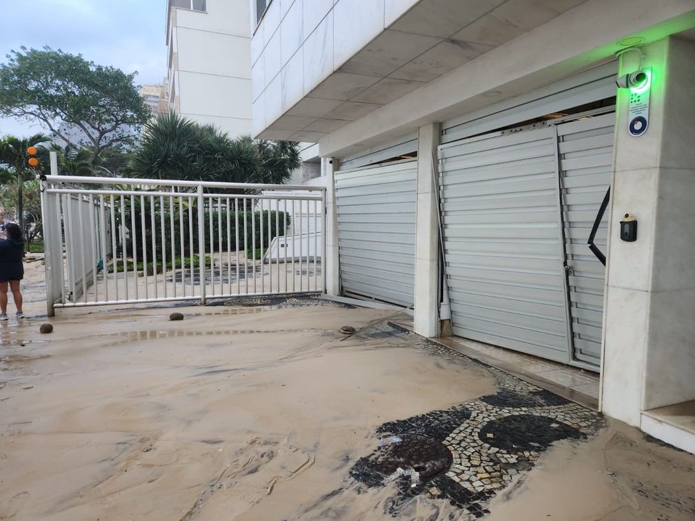 O mar cruzou as duas pistas chegou a danificar um portão de um prédio, como mostram imagens obtidas pelo g1 (veja abaixo).