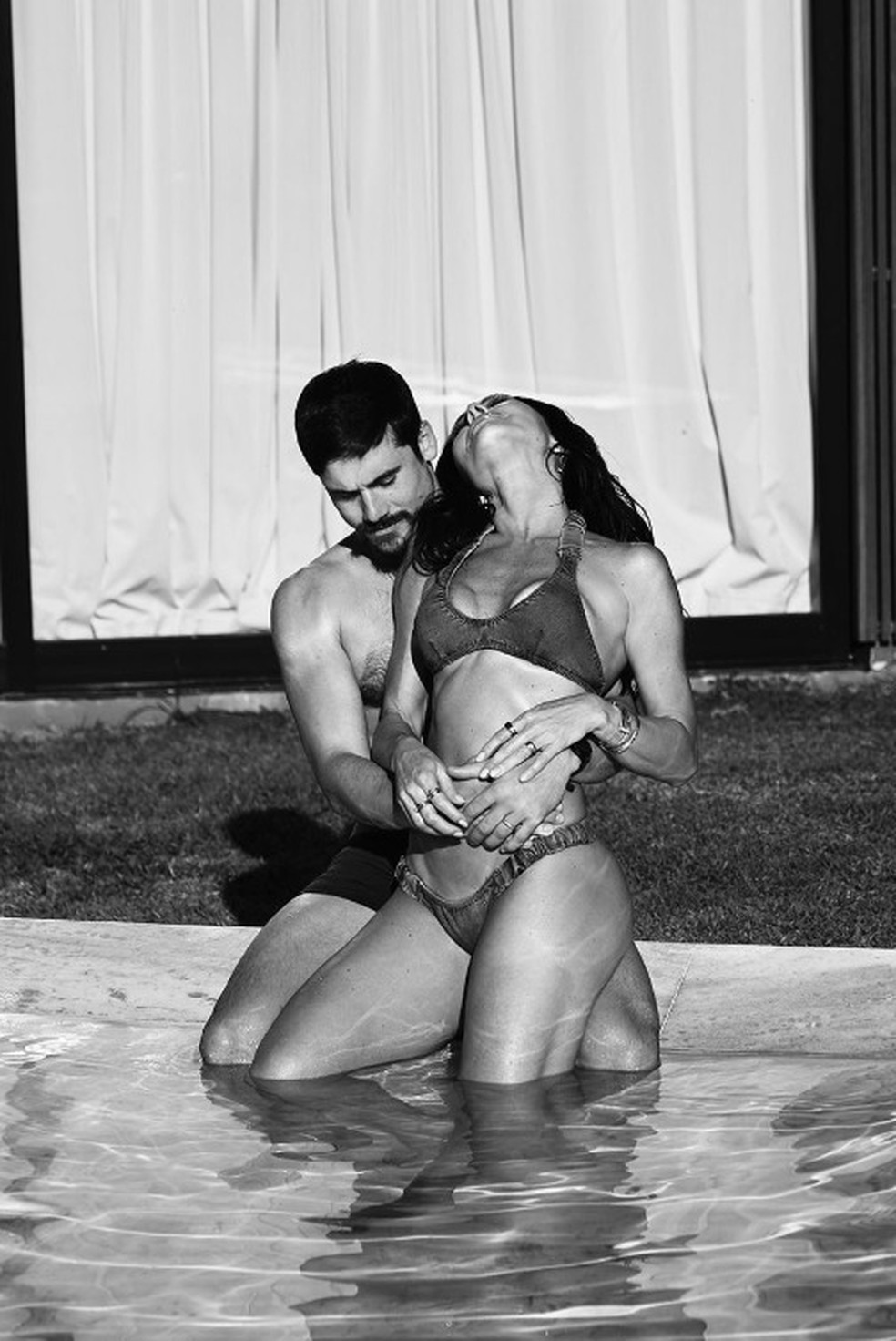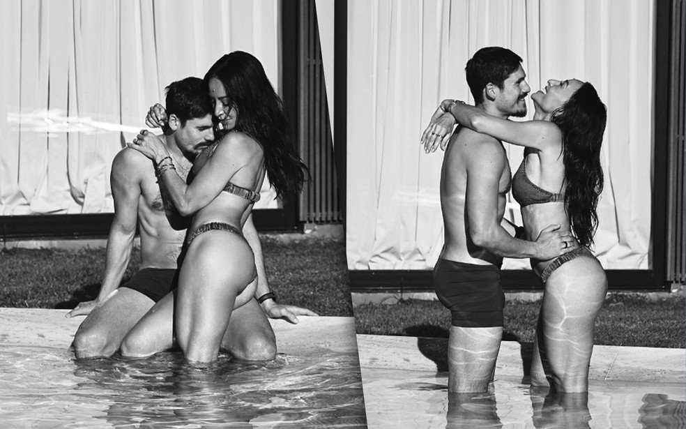 Nos registros, feitos em preto e branco, a apresentadora e o ator compartilham momentos de carinho e intimidade na piscina, para o delírio dos seguidores, que logo encheram a publicação de elogios aos dois.