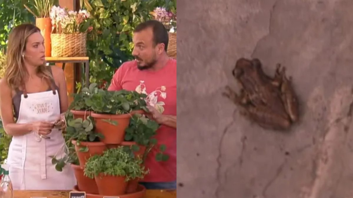 Em outro momento, Talitha deu um grito ao ver que o bicho estava saltando. “Ah, a perereca. Cuidado para não pisar“, pediu ao jornalista, em referência aos funcionários da produção do ‘É de Casa’. “É que ela estava na umidade da muda. Tira ela daí, cuidado para não pisar. Salvem ela“, concordou o especialista em jardinagem. “Mas às 9h da manhã? Perereca gosta de morango?“, se divertiu Talitha.
