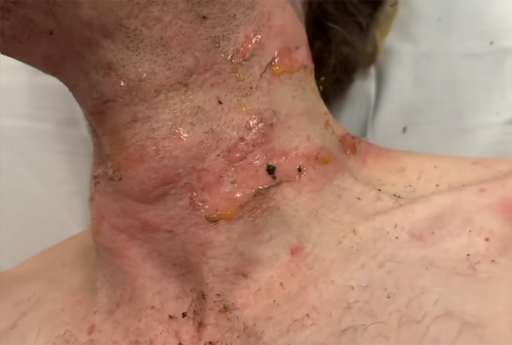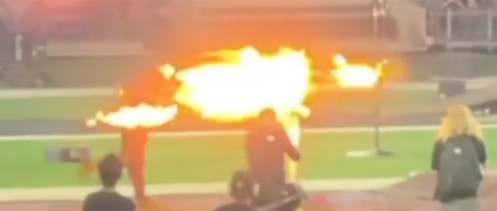 Porém, na hora do número, a chicotada deixou a plateia em pânico quando o acessório com fogo enroscou no pescoço de Michael, provocando queimaduras nele. No vídeo, divulgado pelo programa de TV australiano 7News mostra quando pessoas nas arquibancadas dizem: “tirem isso dele!”.