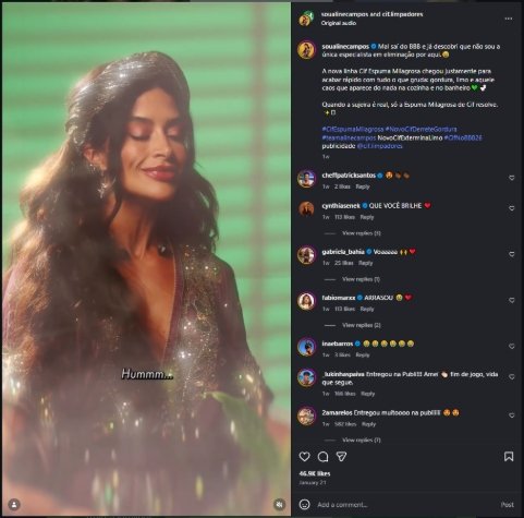 O desempenho reflete uma estratégia de conteúdo fortemente conectada ao universo do programa, com uso intensivo de vídeo e ativações com nomes que já fazem parte do imaginário do reality, como Juliette. A média de 6,28 milhões de visualizações por Reels evidencia o papel do formato curto como principal motor de alcance e amplificação no período.