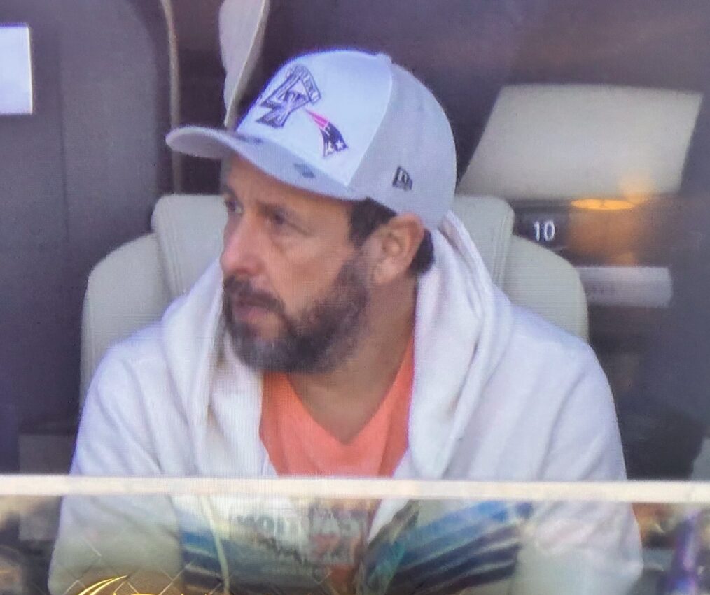 O fã de futebol americano Adam Sandler compareceu a mais um Super Bowl.