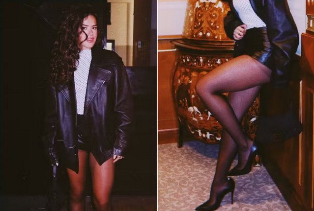 Maisa, de 23 anos, está desfrutando de uma viagem à Itália e, na noite de quarta-feira (25), a atriz e apresentadora saiu para um jantar entre amigos. Para o momento, ela caprichou no look, combinando uma jaqueta de couro preta com um minishort da mesma cor e uma blusinha branca. Ela também usou um salto e colocou uma meia fina transparente, deixando as pernas à mostra.