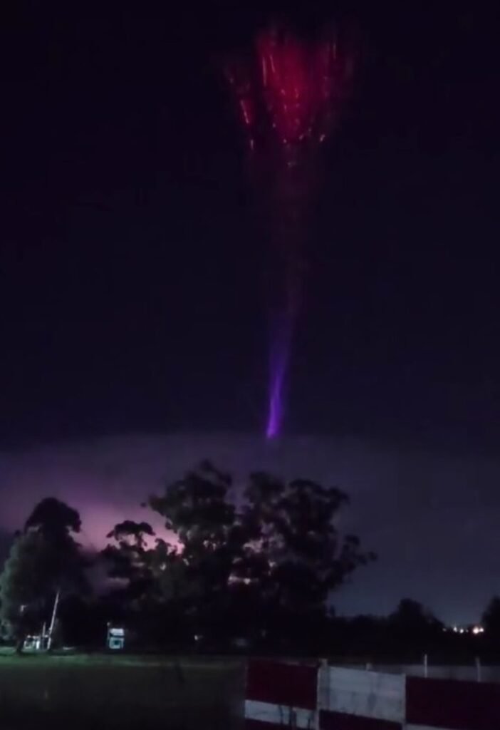 O fenômeno impressionante, conhecido como Gigantic Jet ou Blue Jet, – que parece saído de um filme de ficção científica – foi filmado saindo de uma nuvem direto para a estratosfera.