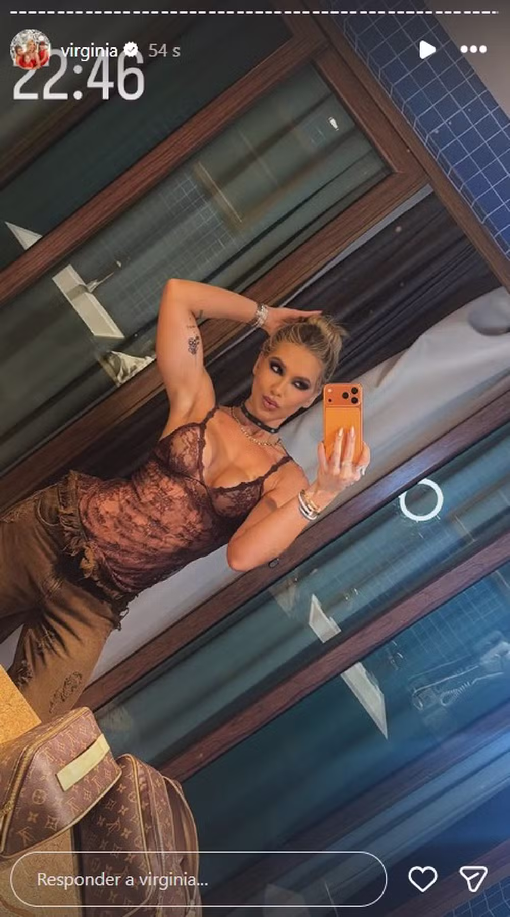 Virginia Fonseca, de 27 anos, viveu seu primeiro dia de vaquejada nesta quarta-feira (18) no Ceará. Após a experiência, a empresária e namorada de Vini Jr, de 25, posou em frente ao espelho e disse que precisaria voltar para Goiânia ainda hoje.
